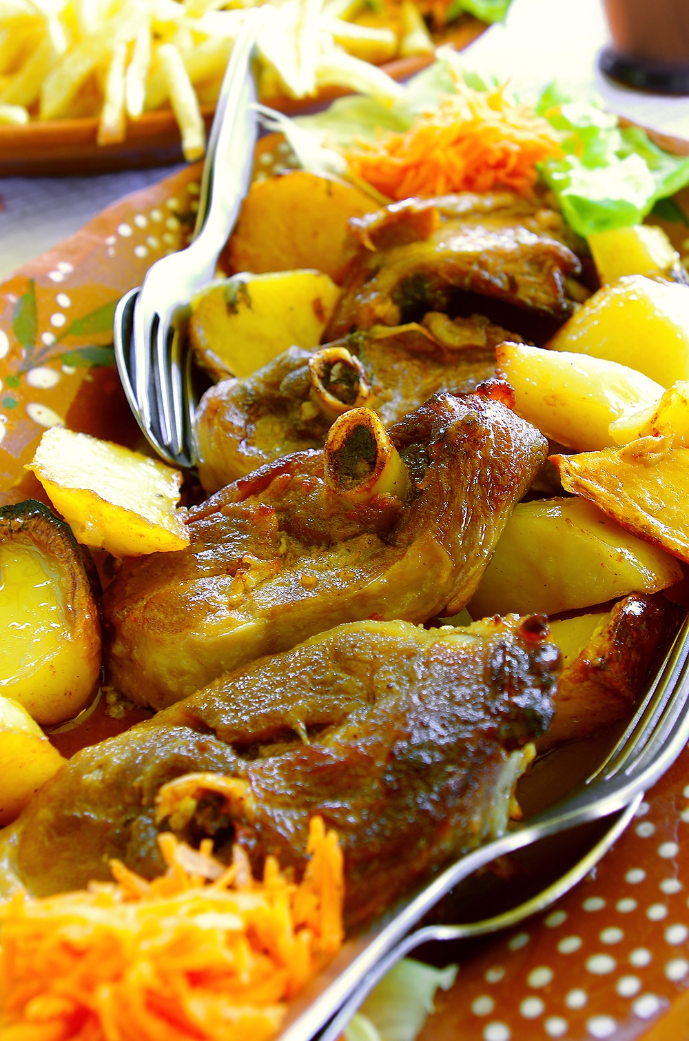 Turkey, although eaten quite a lot in Portugal as risotto or schnitzel, at Christmas is traditionally roasted and commonly stuffed with other meats, nuts and dried fruits, and served with potatoes and vegetables. The Christmas meal is eaten on 24th December before attending midnight mass. Upon returning home, a meal of sweet things is served: deep fried dumplings with sweet potato or squash, or sometimes just deep fried dough with cinnamon and sugar. Presents, traditionally brought by the baby Jesus, latterly more often by Santa Claus, are then exchanged. The main dish at Easter is lamb, especially Alentejo lamb, which has an amazing flavour because of having eaten straw for most of the year due to the region’s sunny and dry climate. There is also a special Easter soup made in Alentejo, consisting of turkey stock, thickened with roasted semolina, served with an emulsion of egg yolk and lemon juice, and finished with chopped parsley. A summer seasonal specialty is sardines, available in June, around the feast days of St. Anthony, John and Peter, and served on toasted corn bread with roasted bell peppers, potatoes, crispy green salad, tomato, coriander, oregano and olive oil. As you remove the skin and bones, the flavour from the sardine and the oil comes through into the bread.