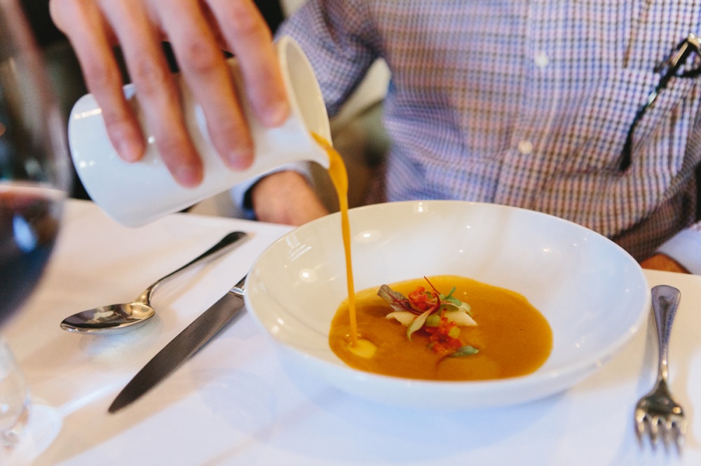 Portal offers three types of dining experience: a set lunch menu – a two or three course meal – with different dishes every week; an à la carte menu; and tapas – petiscos ­– served at the bar. People at the same table can mix the set menus and the à la carte. The idea is to offer something a little lighter at lunchtime and then a step up in the evenings. The food is Portuguese with a twist. ‘The twist is for people to understand what Portuguese food is all about,’ explains Correia. ‘You have to have a to have a twist if you’re running a restaurant in the City. Not everyone has been to Portugal and understands Portuguese cuisine, so the little twist is going to help them. So, for example, with bacalhau, you have to have a twist here, because otherwise people will think “Ugh, salted cod?!” So we serve it either grilled or marinated and cooked sous vide, served with potatoes and vegetables, which are towards what the Brits like. Also porco preto – Iberian pork. We serve a very tasty shoulder steak, marinated for 18 hours with red wine and vegetables and then slow cooked for 12 hours. It is served with a sautée of broad beans and chouriço and mash. The Brits love broad beans. It’s one of the dishes I’ve not yet managed to get off the menu. It’s so popular. It's traditional but with a twist that people understand.’