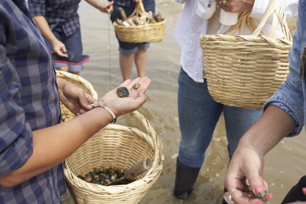 ‘Once out on the sand, clad in wellies and wrapped up against the breeze, we were taught about the three methods for picking clams’