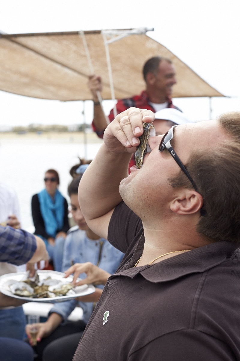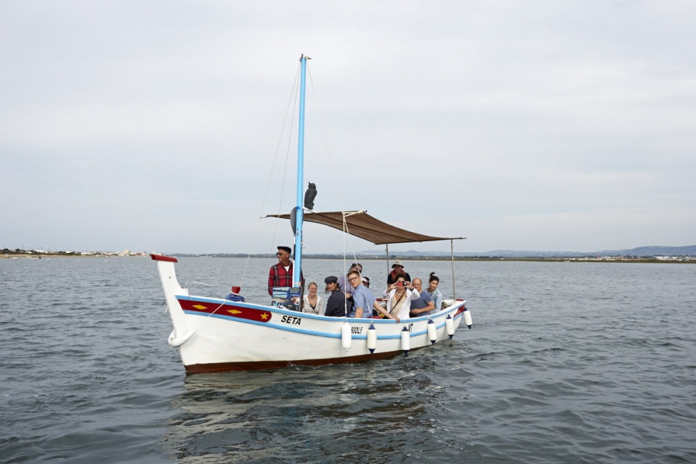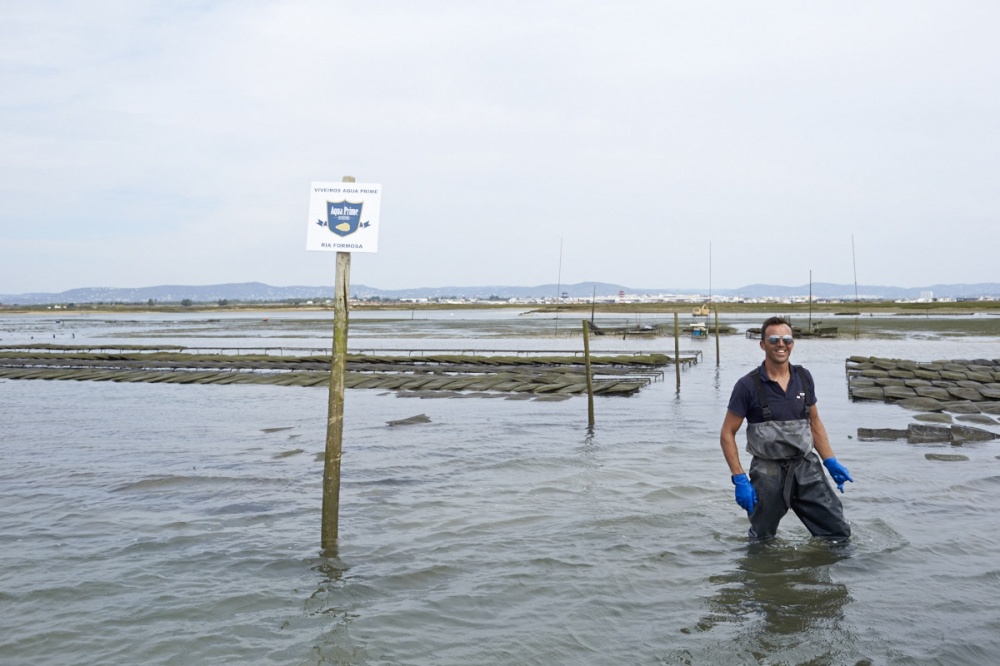 On the way back to dry land, our boats pulled up by some oyster nets, owned by the company Aqua Prime, who kindly offered us a delicious dégustation, accompanied by an unnamed young white wine from the Douro. Oysters, which are turned over each tide, and kept in bags and nets of varying sizes, grow more quickly in the waters of the Ria Formosa because of the high oxygen content. By comparison: they take just one year here as opposed to three in France. The quality is also superior, with these particular oysters having recently won first prize in a blind tasting event. Well, they certainly won our vote too.