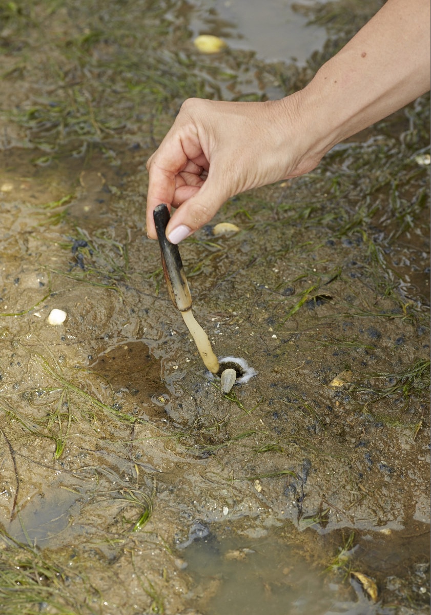 On either side of the lagoon, there are marked areas for clam picking. These are officially designated for professionals. The rest of the lagoon is, theoretically, fair game. These official zones are marked by poles and are like nurseries for the young shellfish. Baby clams are brought in, sometimes from the other areas, sometimes from further afield, and left for about six months to grow to a reputable size. They are then harvested at low tide in a window of about four hours. All kinds of shellfish are to be found – cockles also officially being clams, since this name encompasses all closed shellfish. Razor clams are a speciality of the lagoon.