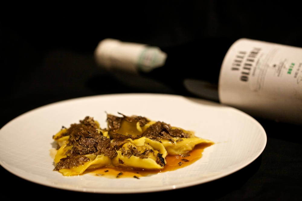 Hartnett’s course was a delicious pheasant agnoletti with rosemary jus, white onion puree and black truffles. A hearty portion of five pieces, this dish marks the arrival of pheasant back in season. It was accompanied by Villa Oliveira from the Dão region, one of Lopes’ personal favourites. A very special limited edition of just 1500 bottles, this Encruzado is nicely complex, with a butteriness and heady concentration due to the age of the vines, leaving a nutty aftertaste.